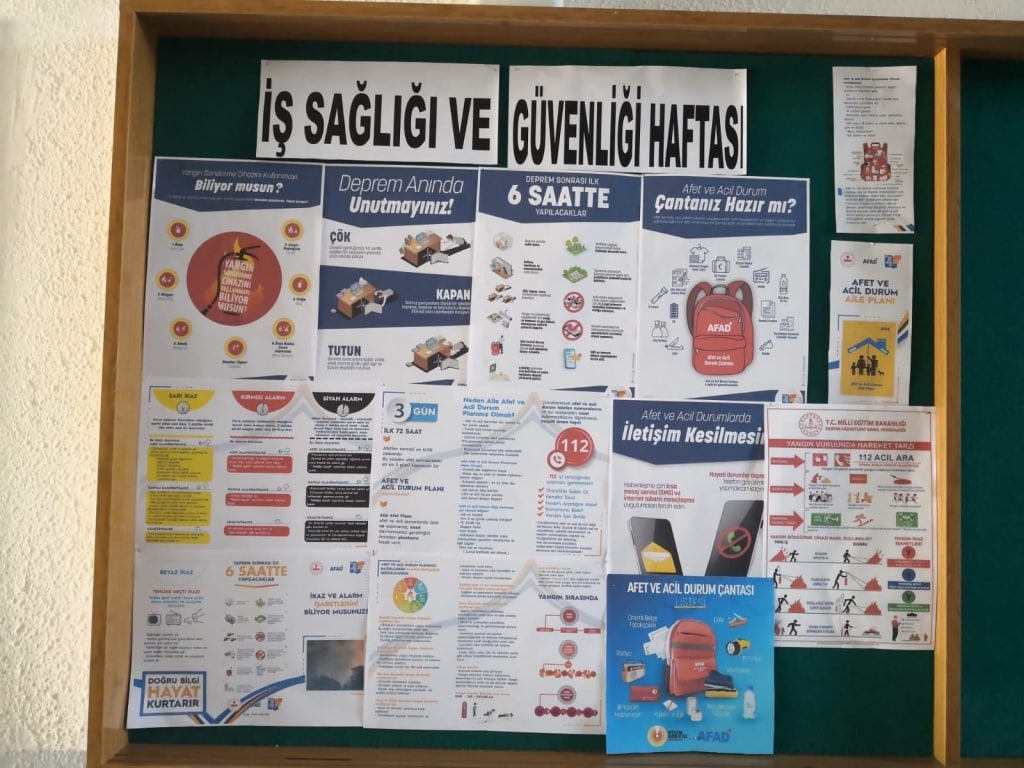 Okulumuzda 4-10 Mayıs İş Sağlığı ve Güvenliği Haftası Faliyetleri kapsamında deprem ve yangın tatbikatları yaparak öğrencilerimiz bilgilendirdik.